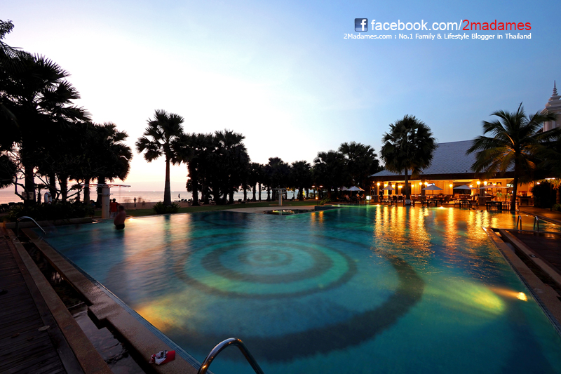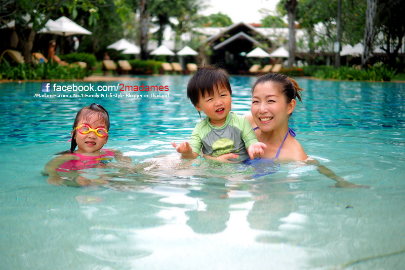 แม้ว่าห้องพักของเราจะมีสระว่ายน้ำส่วนตัว แต่สระว่ายน้ำส่วนกลางที่นี่น่าเล่นมาก เพราะสระเค้าใหญ่มาก ที่ริมบ่อมี Slope คล้ายชายหาดให้เด็กเล็กๆ เดินเล่นได้ด้วย