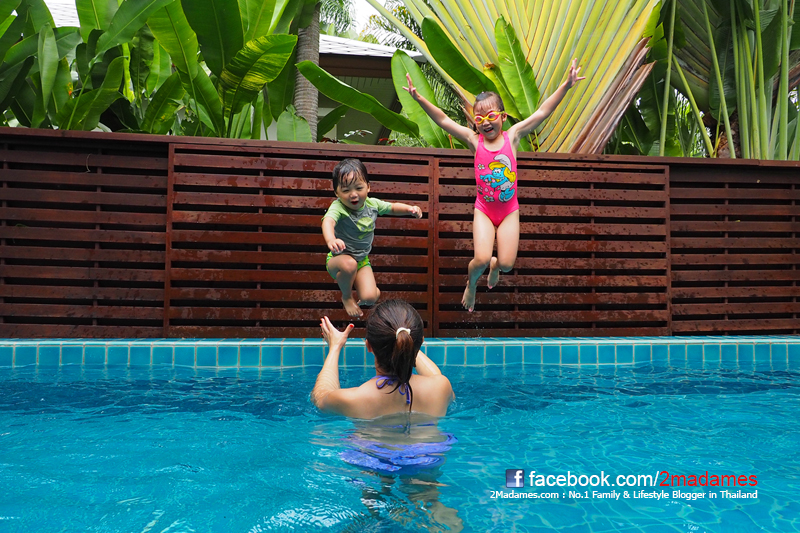 เล่นทรายกันเสร็จ พากลับมาที่ห้อง ยังจะขอเล่นน้ำที่สระว่ายน้ำส่วนตัวอีก เอาเลยลูก มันส์กันให้สุดชีวิตไปเลย