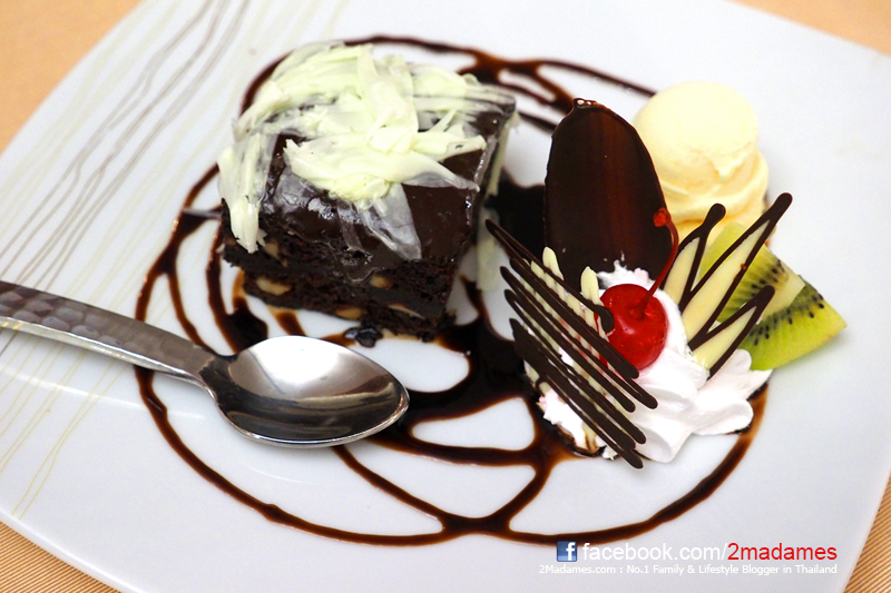 อิ่มแล้วเรามาต่อด้วยของหวานกันต่อเลยนะครับ เป็นบราวนี่รสเข้มอุ่นๆทานกับไอศกรีมวานิลลาหอมหวาน เข้ากันดีมากเลย