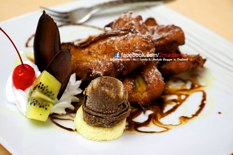 ส่วนของหวานอีกเมนู “Banana Flitters” เรียกง่ายๆว่ากล้วยหอมทอด กรอบนอกไส้ในเป็นเนื้อกล้วยนุ่มๆหวานๆ เป็นเมนูของหวานที่ชอบมากๆเลยละ