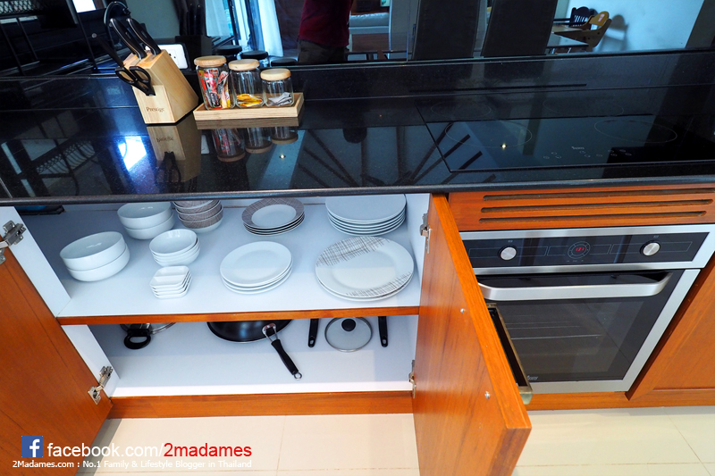 จานชามหม้ออะไรก็มี เตาอบไฟฟ้า พร้อมอุปกรณ์ทำครัวครบชุด (มีเยอะกว่าที่บ้านผมอีก)