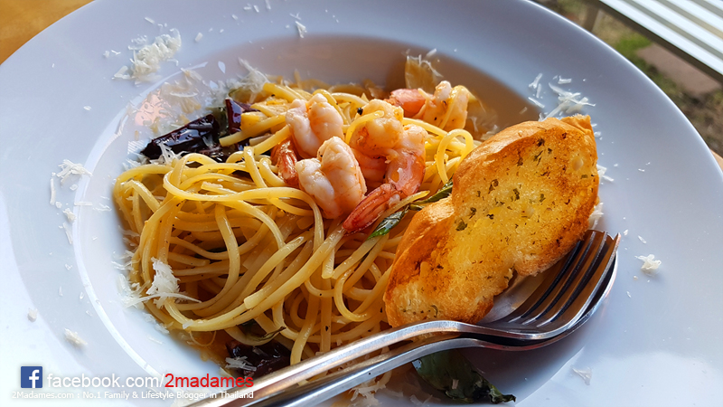 สปาเก็ตตี้กุ้งผัดพริกกระเทียม ราคา 220 บาท ปริมาณใช้ได้ แต่ที่ไม่ปลื้มคือกุ้งตัวเล็กไปหน่อยและไม่ค่อยสดเท่าที่ควร ที่สำคัญผัดมาน้ำมันเยิ้มมากๆ