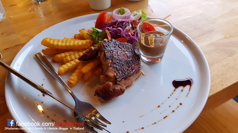 Pork Tenderloin Steak ราคา 280 บาท ชิ้นเล็กไปหน่อยถ้าเทียบกับราคา ส่วนเนื้อหมูย่างมาสุกไปสักนิด แต่ที่ชอบมากๆคือเฟรนซ์ฟรายทอดมาใหม่ร้อนๆเลย