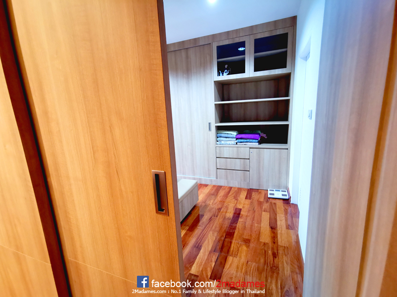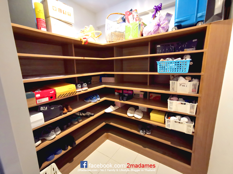 ข้างๆมีซ่อนห้องรองเท้าไว้ 1 ห้อง ไว้เก็บรองเท้าและพวกกระเป๋าเดินทางใบใหญ่ (ปล.ทำใหญ่มาก เพราะตอนอยู่คอนโดไม่ค่อยมีที่เก็บรองเท้า เก็บกดสุดๆ)