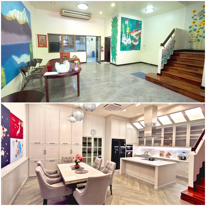 หลังจากซื้อขาย เราใช้เวลาออกแบบวางแผนราวๆ 5 เดือน ก่อสร้างปรับปรุงตกแต่งอีกราวๆ 7 เดือน เริ่มตั้งแต่คิดออกแบบ Layout แต่ละโซน คิดทุกรายละเอียดทีละห้อง เพื่อแน่ใจให้ได้ว่าบ้านหลั