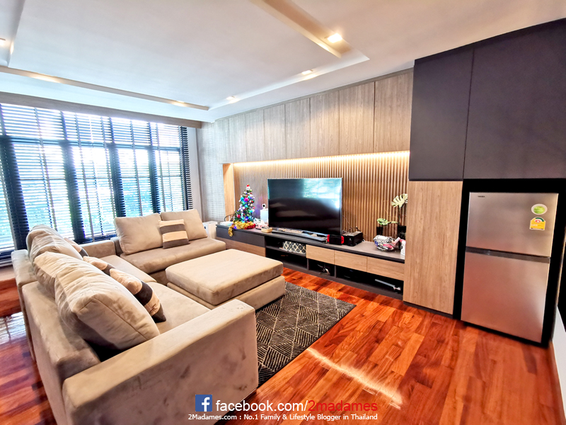มุมนี้เป็นมุมพักผ่อนมุมโปรดของครอบครัวเลย ทุกคนมักจะมานั่งเล่นนอนเล่นบนโซฟาอยู่เสมอ