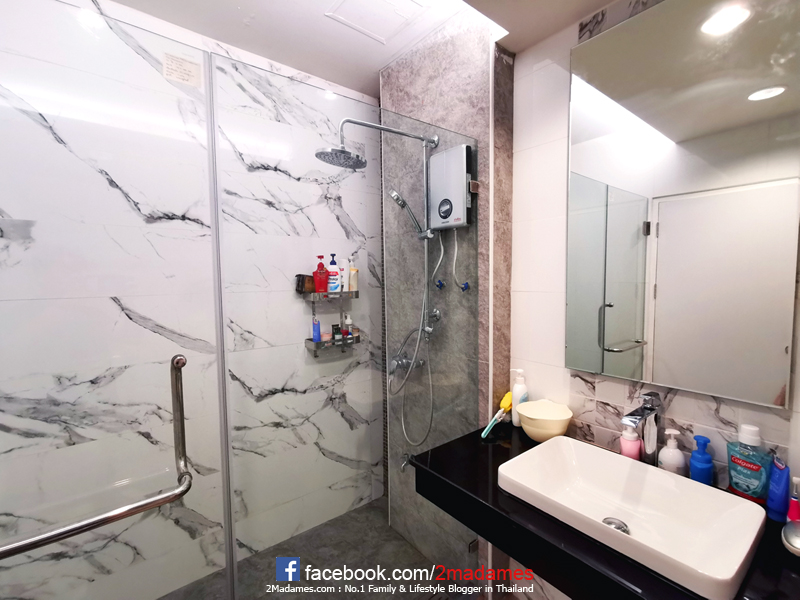 ห้องน้ำปูกระเบื้องหลายลายมาก เน้นแนวเรียบหรูครับ ผมเป็นคนชอบอาบน้ำกับฝักบัวแบบ Rain Shower มาก บ้านใหม่ทั้งทีจัดไปจ้า