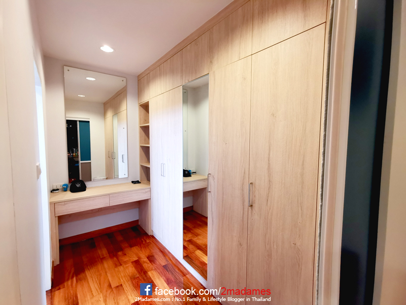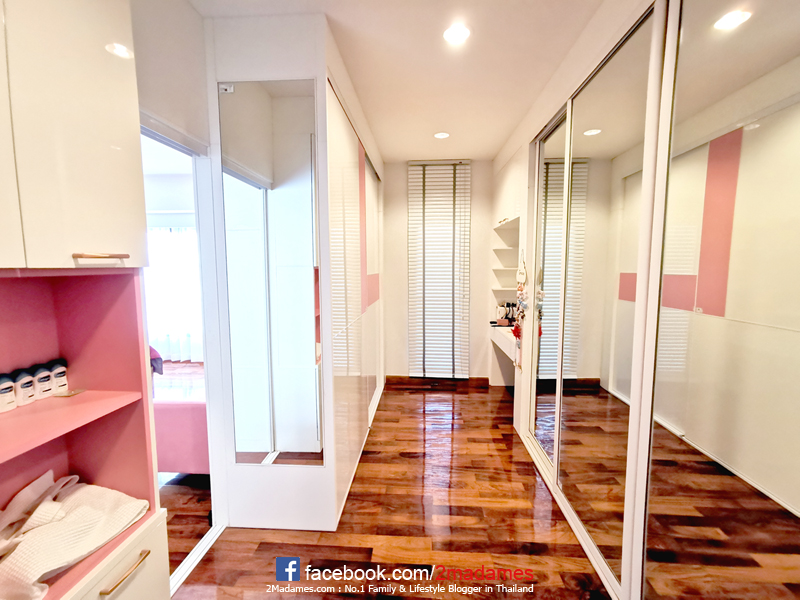ห้องเดิมเป็นห้องใหญ่มาก ก็แบ่งเป็นโซนแต่งตัวกั้นด้วยประตูเช่นกัน ลูกสาวเป็นผู้หญิง ต้องการตู้เสื้อผ้าเยอะหน่อยเนอะ เพื่อความสวยของลูกสาวพ่อ พ่อจัดเต็มให้เลยจ๊ะ