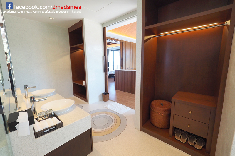 ด้านหลังเตียงจะเป็นห้องน้ำห้องใหญ่เบอเร่อเลย เข้ามาจะเจอกับอ่างล้างมือแบบ His & Her มี 2 อ่างไม่ต้องแย่งกัน