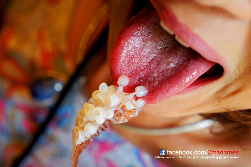 ส่วนใครที่สงสัยว่าหนวดปลาหมึกมันดูดลิ้นมั้ย ตอบเลยว่าดูดครับ เหมือนในหนังกวน มึน โฮ เลยอ่ะ แต่มันไม่เจ็บลิ้นนะครับ ถือว่าเป็นประสบการณ์แปลกใหม่ให้กับชีวิตดีจริงๆ