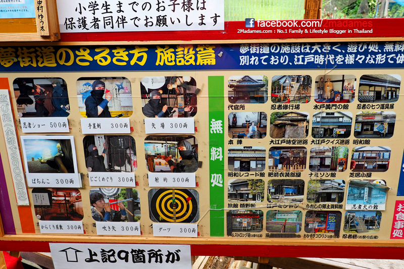 ค่าเข้าชม : ค่าผ่านประตู+เล่นกิจกรรมต่างๆได้+แต่งชุดนินจา ผู้ใหญ่ 2,100 เยน เด็ก 1,600 เยน น้องกายฟรีจ้า