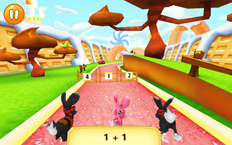 กติกาในเกมส์ก็ง่ายๆครับ คือ กระต่ายที่ลงแข่งขันวิ่งแข่ง จะมีโจทย์เลขขึ้นมา แล้วให้น้องๆเลือกคำตอบ ถ้าเลือกผิด กระต่ายของเราจะกระโดดข้ามรั้วไม่ผ่าน แล้วก็คอยเก็บผลไม้ข้างๆทางสะสมคะแนนไปด้วย