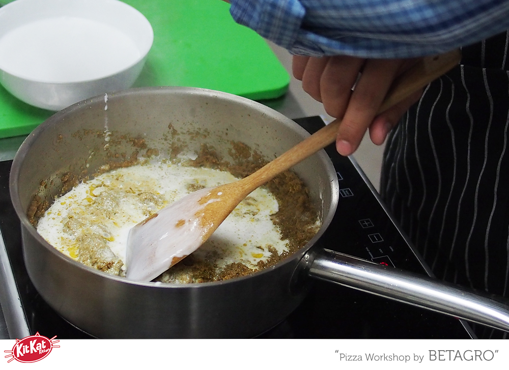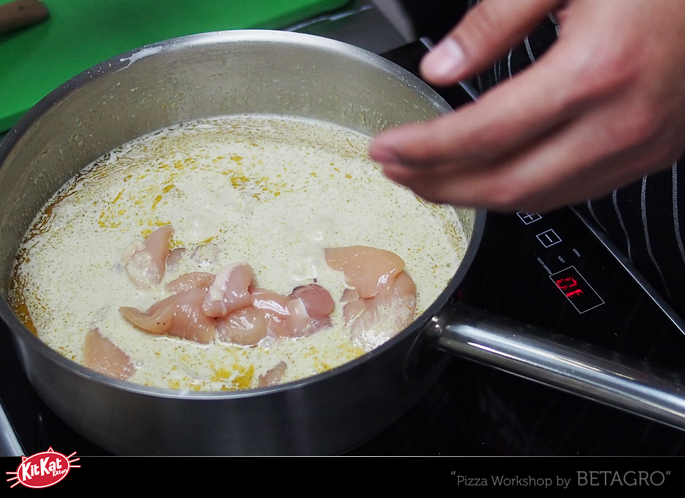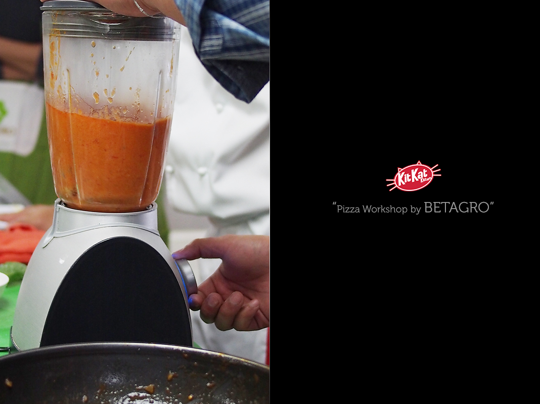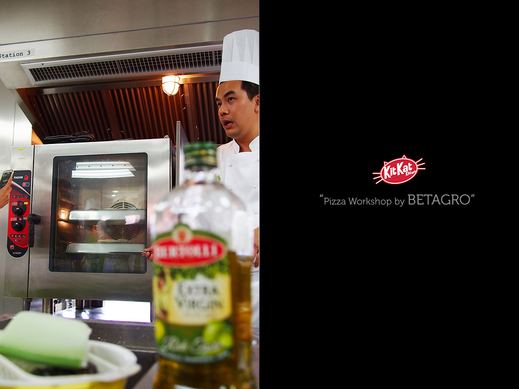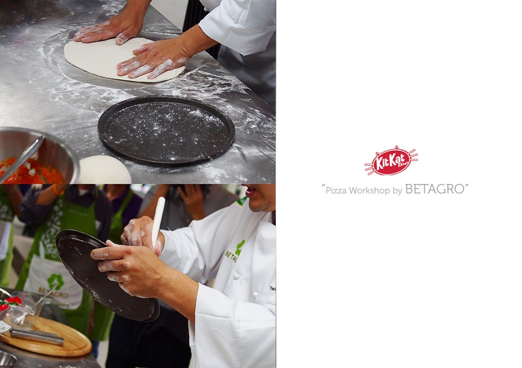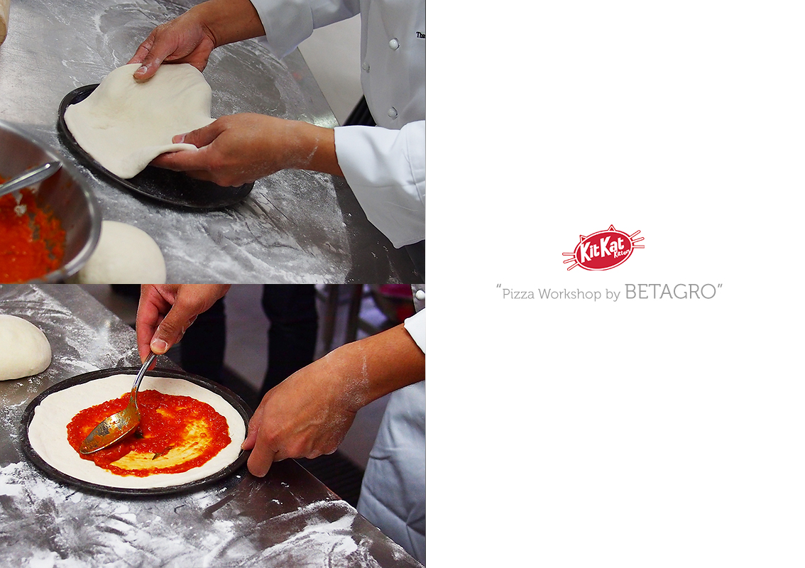 ขั้นตอนต่อไปเรามาทำหน้าพิซซ่ากันต่อค่ะ โดยเบทาโกรจะให้ผลิตภัณฑ์กันแบบไม่อั้นเพื่อให้เราใส่ลงไปที่หน้าพิซซ่าได้อย่างเต็มที่ โดยที่ในภาพ เชฟ กำลังสาธิตการทำหน้าพิซซ่าค่ะ วิธีการทำก็ผัด กระเทียม หอมใหญ่ แฮม และเบคอนเข้าด้วยกัน แล้วพักไว้ค่ะ ส่วนนี้จะเอาไว้ใส่บนหน้าพิซซ่า บน Tomato Concasse Sauce ที่เราทำพักไว้ขั้นตอนแรกค่ะ