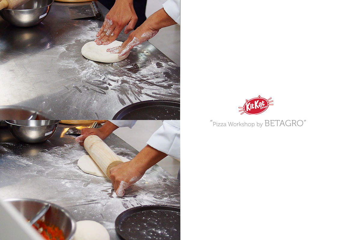 ต่อไปเป็นขั้นตอนการทำแป้งพิซซ่า โดยปกติแล้วเราจะต้องเตรียมแป้งพิซซ่าไว้เป็นอย่างแรก แต่เหมียวๆ ขอรีวิว การทำแป้งพิซซ่าไว้ด้านหลังนะคะ เพราะจะมีภาพประกอบตอนที่เหมียวๆทำเอง ร่วมกับเพื่อนๆ และเชฟค่ะ พร้อมแล้วตามมาทำแป้งพิซซ่าไปพร้อมๆกันเลยนะคะ