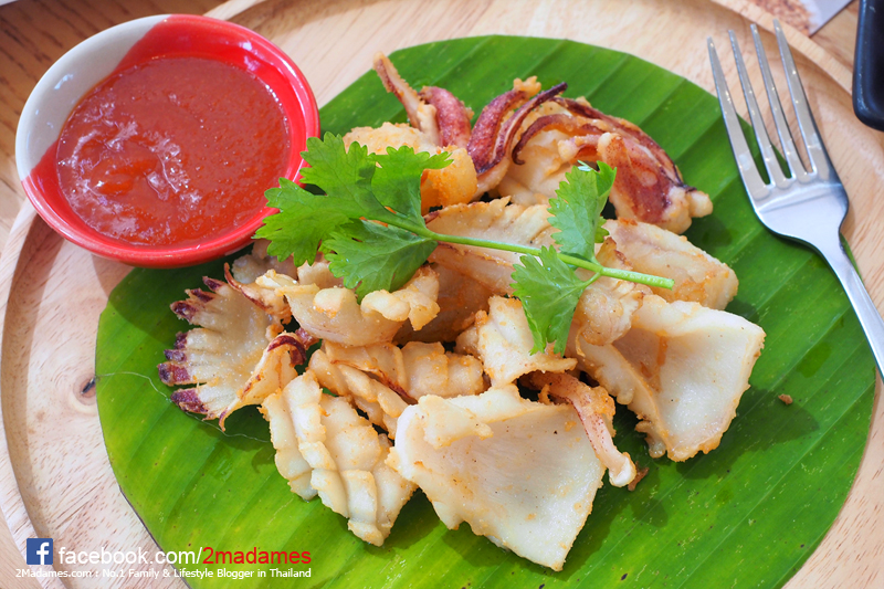 ปลาหมึกตราดแดดเดียว ความพิเศษอยู่ที่เอาปลาหมึกมากตากแดดยามเช้าอ่อนๆตากไม่เลยเที่ยง อารมณ์เหมือนที่เคยอุ้มลูกไปเดินรับวิตามินดีจากแสงแดดยามเช้าเลย แถมแดดช่วงเช้ายังมี UV ต่ำกว่าเที่ยงๆบ่ายๆด้วย พอตากแล้วเราจะเนื้อปลาหมึกที่บางลงเพราะสูญเสียน้ำไปแล้ว แต่ปลาหมึกที่เสิร์ฟมาอร่อยมาก ไม่เหนียวไม่แห้งแข็งเลย เด็กๆก็เคี้ยวง่ายมาก จานนี้หมดในพริบตาทีเดียว