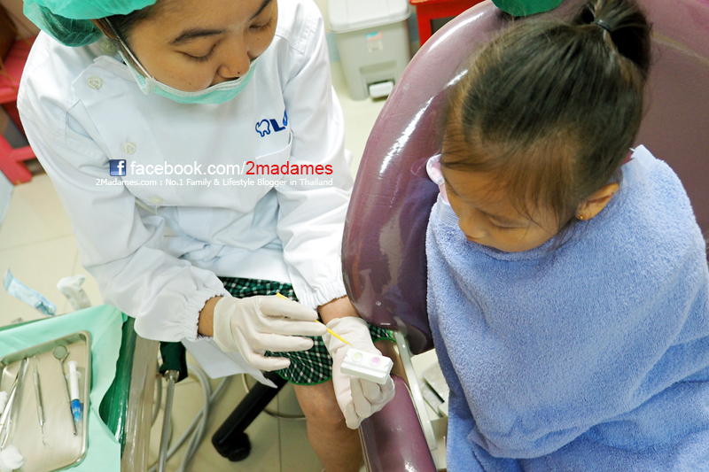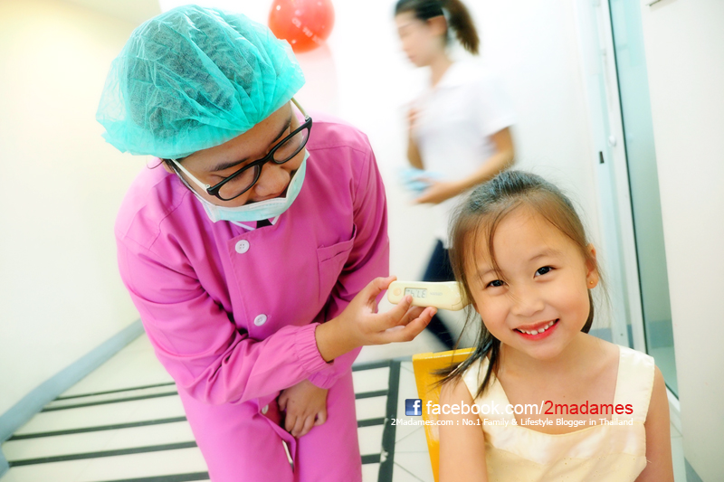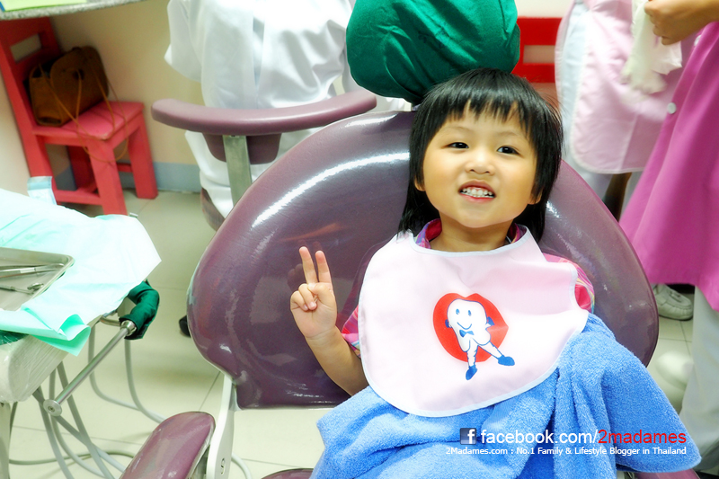 ถ้าเป็นที่อื่น คุณหมอจะเริ่มบรรเลงปากแล้ว ซึ่งเด็กๆก็อาจจะกลัวว่าเอาอะไรเข้ามาในปากชั้น แล้วเธอจะทำอะไร จะเจ็บหรือเปล่า ซึ่งแม้แต่ผู้ใหญ่ยังเป็น เด็กๆคงยิ่งกังวลเป็นทวีคูณ