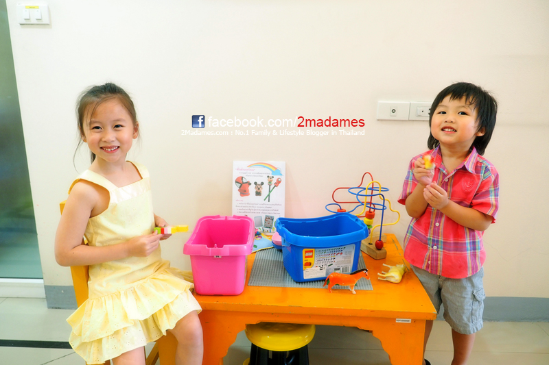 ไม่ไกลกัน ก็มีโต๊ะของเล่นไว้ให้เด็กๆเล่นด้วย พอเห็นเท่านั้นแหละ สองลิงแสบก็จองเก้าอี้คนละตัวยึดครองพื้นที่กันไป
