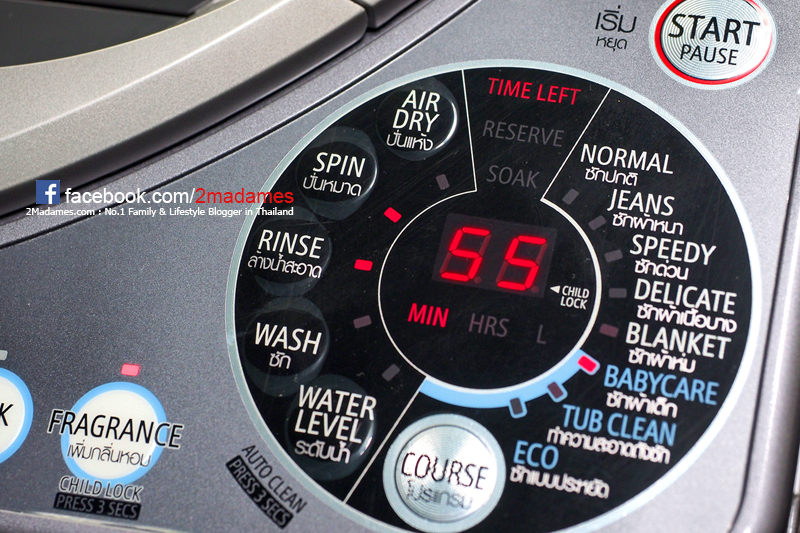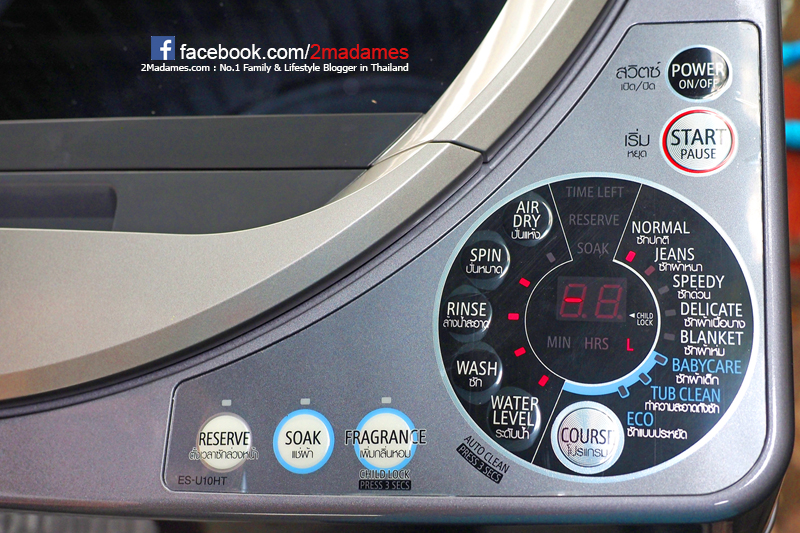 แผงควบคุมก็ใช้งานไม่ยากอะไร หากใครเคยใช้เครื่องซักผ้ามาบ้างก็สามารถเข้าใจได้ไม่ยากค่ะ ก็แค่เลือกโปรแกรมซักผ้าต่างๆ ซึ่งมีหลายอย่างมาก ทั้งซักปกติ, ซักผ้าหนา-บาง, ซักผ้าเด็ก ซักถนอมผ้า เป็นต้น