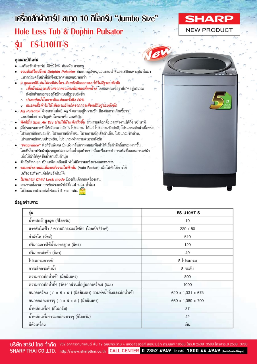 สำหรับเครื่องซักผ้า Sharp รุ่น ES-U10HT-S ส่วนราคาก็อยู่ที่ 10,990 บาท แต่ตอนนี้ลดราคาพิเศษเหลือ 9,990 บาท และตอนนี้ชาร์ป เค้ามีโปรโมชั่นลุ้นรางวัลอีกด้วย ถึงสิ้นเดือน สิงหาคม 2559 นี้ รายละเอียดของโปรโมชั่นอ่านเพิ่มเติมที่ bit.ly/Happy_Rainy
