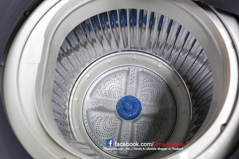 แตกต่างจากเครื่องซักผ้าทั่วไป เครื่องซักผ้าชาร์ปรุ่นนี้จะมีถังซักที่ไม่มีรู ซึ่งเค้าบอกว่ามันจะทำให้ถังซักสะอาดกว่า ไม่เป็นที่สะสมของเชื้อโรค ช่วยถนอมเนื้อผ้า แถมช่วยเรื่องการประหยัดน้ำได้มากถึง 50 กว่าลิตรต่อการซักหนึ่งครั้งด้วย (เทียบกับน้ำดื่มขวดขนาด 1.5 ลิตร 36 ขวดเลยทีเดียวนะ)