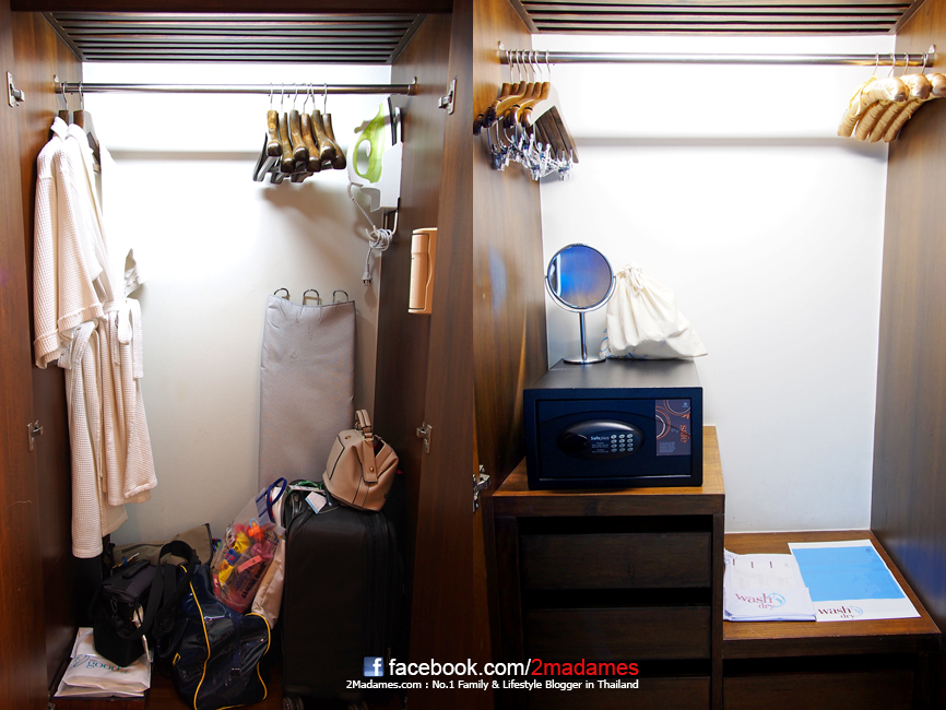 ตู้เสื้อผ้ามีตู้เซฟ ไดร์เป่าผม และเตารีด