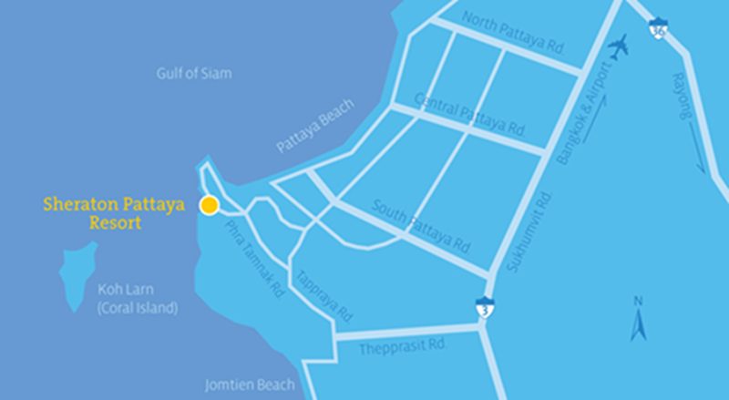 • ขับตรงไปสุดทาง ตามบังคับให้เลี้ยวโค้งขวา และเลี้ยวซ้ายเข้า เชอราตัน พัทยา รีสอร์ท