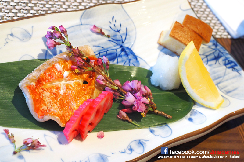 จานที่สามเป็น Yakimono จานนี้เป็นปลา Kinmedai เป็นเนื้อปลากะพงแดงตาโตย่าง 1 ชิ้น ขอบอกว่าเนื้อแน่นมาก ทานแบบไม่ต้องจิ้มน้ำจิ้มก็รสชาติดีอยู่แล้วเพราะความสดหวานของเนื้อปลา หรือจะบีบเลมอนสักนิดก็ยิ่งอร่อยมากขึ้นไปอีก