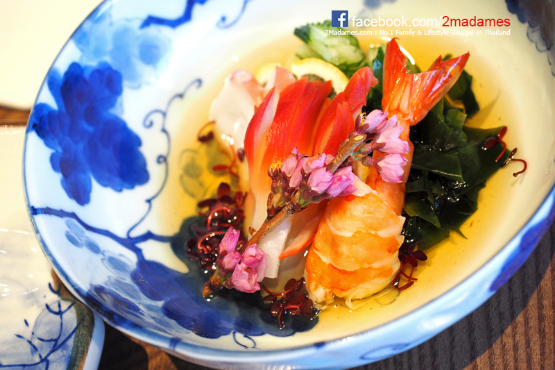ต่อมาคือ Sunomono ประกอบด้วยหอยปีกนก 1 ชิ้น, ทาโกะ(หนวดปลาหมึกยักษ์) 1 ชิ้น และกุ้งต้มไซส์ใหญ่ 1 ตัว