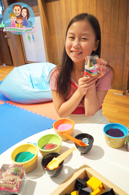 ขั้นตอนก็ไม่ยาก แต่ค่อยๆตักทรายให้เกิดเป็นชั้นๆ แล้ววางของตกแต่งพวกเปลือกหอยลงไป แล้วเจ้าหน้าที่จะไปใส่เจลเทียน สามารถนำกลับบ้านได้เลย