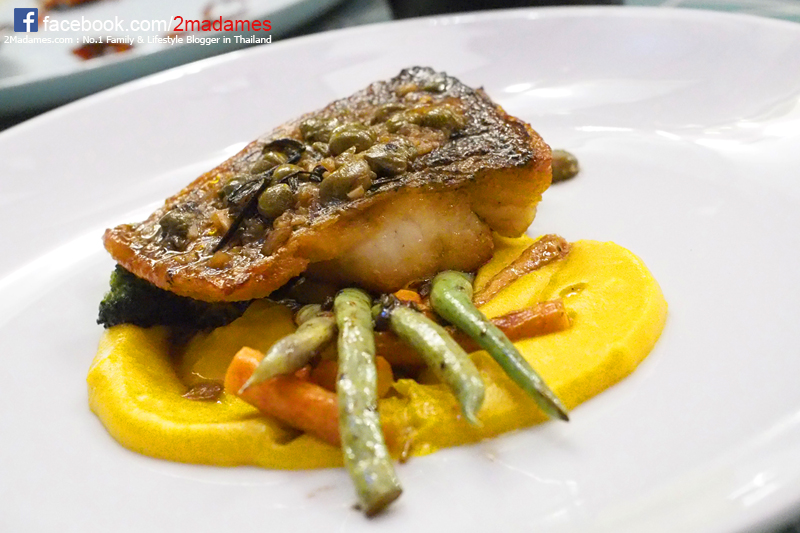 Sea Bass 550++ บาท เนื้อปลาเก๋าชิ้นโตย่างซอสสเนบเคเปอร์ เสิร์ฟพร้อมฟักทองบด