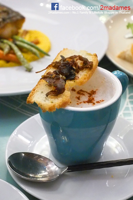 Mushroom Cappucino เป็นซุปเห็ดเข้มข้นด้วยเห็ด 3 ชนิด มีใส่วอลนัทเพิ่มความเข้มข้นลงไปอีก อร่อยเลยล่ะ