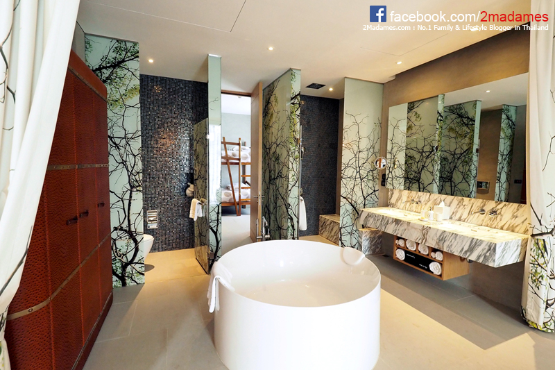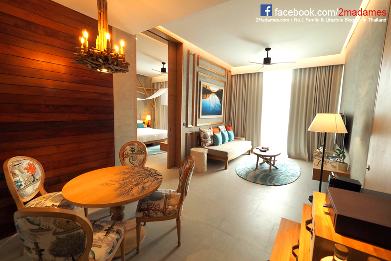 ห้อง Family Suite ตกแต่งสไตล์ Nature อิงแอบแนบชิดธรรมชาติ พื้นที่ใช้สอยทั้งหมดใหญ่ดีครับ เป็นห้องแบบ 2 ห้องนอน 2 ห้องน้ำ 1 ห้องนั่งเล่น เพดานที่นี่สูค่อนข้างสูง เข้ามาแล้วจะรู้สึกโปร่งโล่งสบาย ไม่อึดอัด