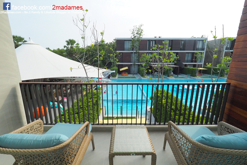 วิวระเบียงห้องจะมองไปเห็นเป็นสระว่ายน้ำ