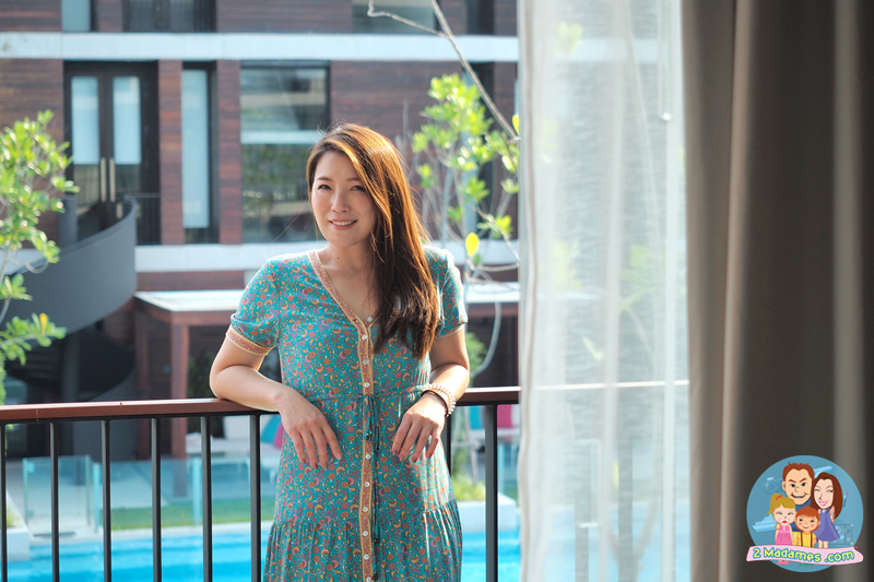 คุณนายแอนแต่งตัวมาเข้ากับสีห้องมากๆ แค่ภายในบริเวณห้อง ก็มีมุมถ่ายรูปเยอะแยะไปหมด