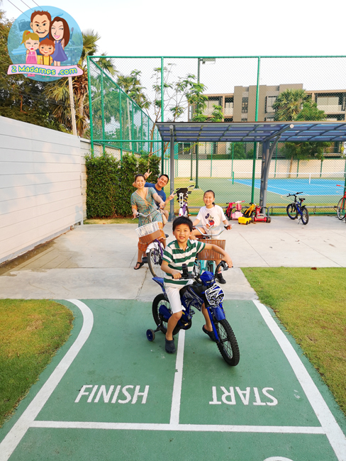 แดดยามเย็นเริ่มร่มลงมาบ้างแล้ว เราพากันไปทำกิจกรรมใหม่อันแรกเลยคือการปั่นจักรยานครับ จักรยานยืมได้ฟรีโดยติดต่อที่ห้องของเล่น Kids Tent ได้เลย