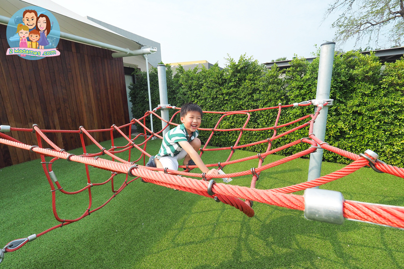 ปั่นเสร็จ ยังไม่หมดแรง ชวนกันมาเล่นที่ Playground กันดีกว่า ตรงนี้จะมีทั้งแทรมโพลีน ชิงช้า และเชือกให้เด็กๆได้ออกกำลังกัน