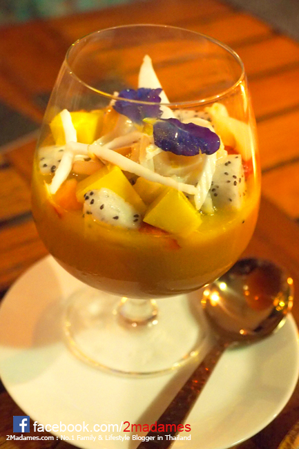 ปิดท้ายมื้อนี้ด้วยของหวาน พานาคอตต้าชาไทย 280++บาท เราชอบความครีเอทของเมนูของหวานที่นี่ ที่นำสิ่งที่คนส่วนใหญ่ชอบมา Mixed&Match ให้ดูน่าลอง อย่างเมนูนี้เชื่อว่าหลายคนติดชาไทย ก็เลยจับเอามาทำเป็นขนมหวานจัดแต่งให้สวยด้วยผลไม้รวม แค่นี้ก็ดูน่ารักน่าทานแล้วจ้า