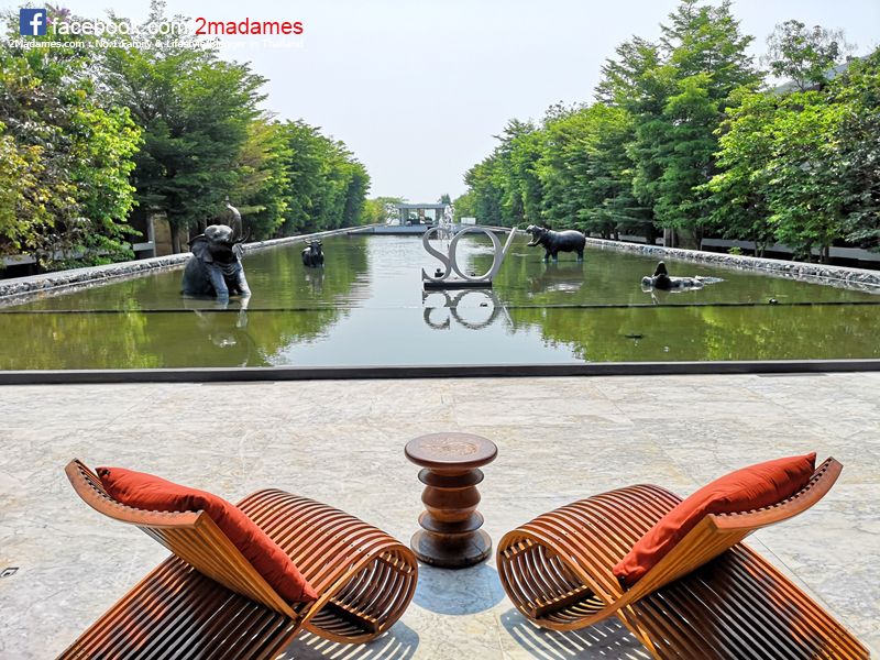 วิวจากล็อบบี้จะเป็นสระน้ำพร้อมรูปปั้นสัตว์ต่างๆ