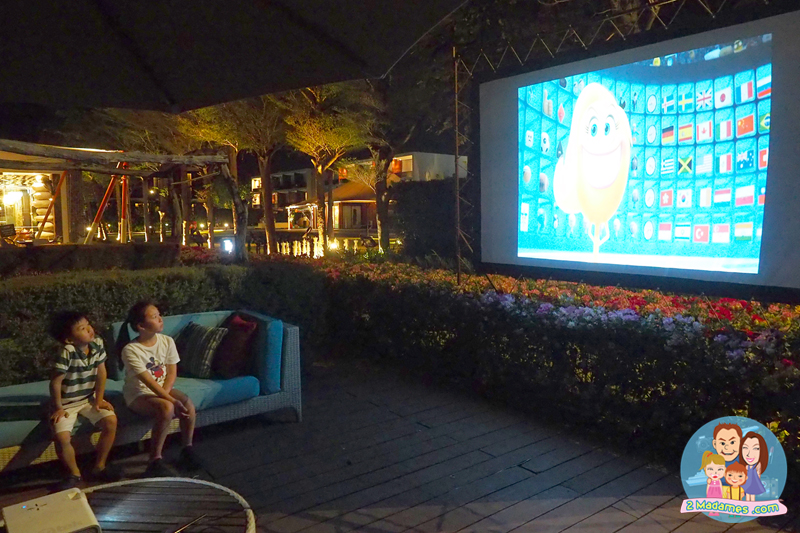 อิ่มแล้ว ระหว่างเดินกลับห้อง อ้าวมีหนังกลางแปลงด้วยแฮะ แวะนั่งดูกันสบายๆก็ได้