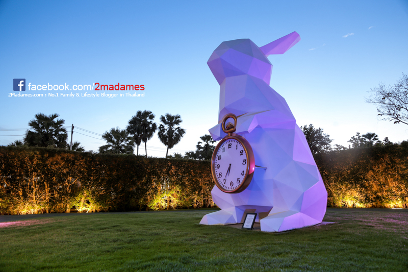 มาถึงก็แวะทักทายกับเจ้ากระต่ายยักษ์หรือคุณสุขสบายถือนาฬิกาหน้าทางเข้าก่อนเลย