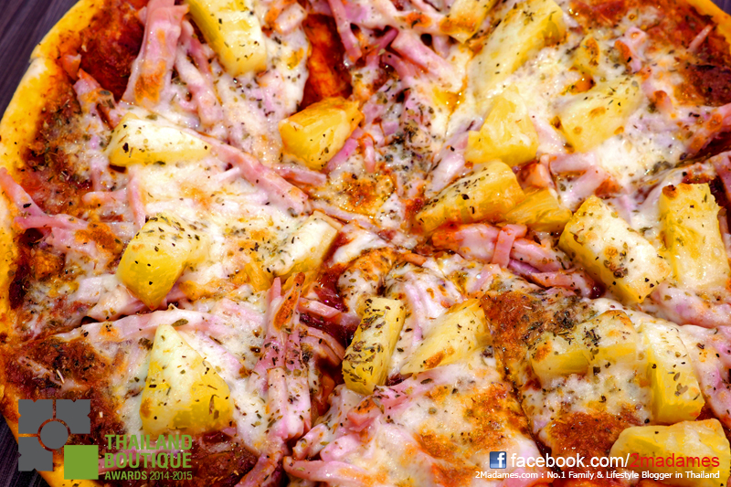 เราชิมอาหารไทยกันไปหมดจนเกือบอิ่มแล้ว แต่ที่เห็นจะเป็นไฮไลท์มากที่สุดคงจะเป็นพิซซ่าถาดนี้ครับ พิซซ่าแป้งบางกรอบ เครื่องแน่นเชียว มีให้เลือกหลาหหลายหน้ามากๆครับ ผมสั่งฮาวายเอี้ยนมาให้เด็กๆทานด้วย ขนาดทานอาหารไทยอิ่มๆแล้ว พิซซ่าก็ยังเกือบหมดถาดเหมือนกันนะเนี่ย