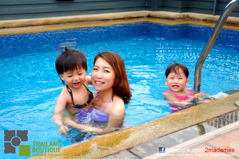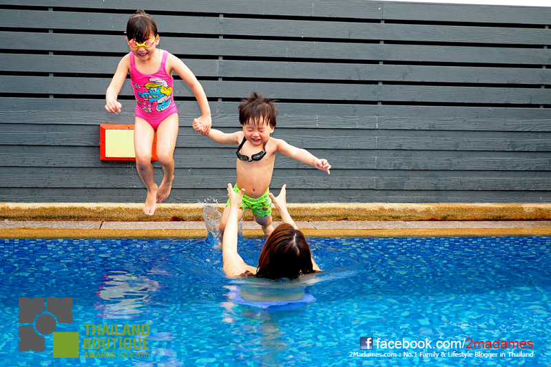 ถึงสระจะไม่ใหญ่มาก แต่ก็มีพื้นที่ยาวๆให้ว่ายน้ำเล่นกันได้