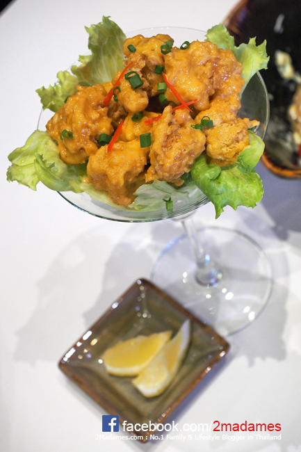 “กุ้งฮอกไกโด” ราคา 169 บาท ถือเป็นเมนูที่มีรสชาติแปลกใหม่ที่พวกเราไม่เคยทานที่ไหนมาก่อน ร้านจะเอากุ้งไปชุบแป้งทอดจนมีความกรอบเบาๆ แล้วเอาไปผัดเคลือบกับซอสสูตรพิเศษที่มีรสหวานเล็กน้อยปนความเผ็ดของวาซาบิ รับรองว่าใครทานวาซาบิได้ต้องชอบเมนูนี้เหมือนผมแน่นอน