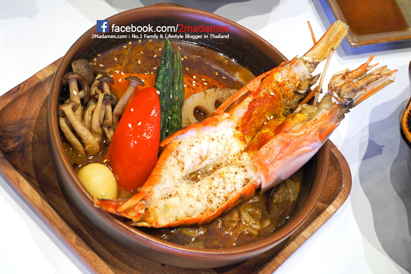 วันนั้นไปกับผู้ใหญ่ 3 คน ก็ลองมัน 3 เมนูเลย และแน่นอนว่าขอลองเมนูเด่นๆกันก่อน เพราะดูเมนูแล้วอดใจไม่ไหวจริงๆ กุ้งมันทิ่มตามาก “ซุปแกงกะหรี่กุ้งแม่น้ำ” ราคา 499 บาท ราคาแรงไปนิดแต่รับรองคุ้มราคา ถ้าใครงบถึงก็อยากให้ลองเพราะกุ้งแม่น้ำเนื้อแน่นมันเยิ้มมากๆแถมไซส์ไม่ได้เล็กนะ นอกจากนี้ในพอชั่นยังมีผักหลากชนิดทั้งรากบัวชิ้นโต เห็ดหูหนู เห็ดญี่ปุ่น แครอท มัน พริกหวาน บร็อคโคลี่ มีและไข่นกกระทาด้วย ส่วนรสชาติซุปนั้นบอกเลยว่าอย่าเพิ่งคิดว่าจะเหมือนข้าวแกงกะหรี่หมูทอดที่หาทานได้ทั่วไปนะ คนละรสชาติกันเลย ตัวซุปแกงกะหรี่ของกะระคุจะเป็นซุปน้ำข้นที่ไม่ข้นหนืด มีความหอมของผงกะหรี่ เครื่องเทศและสมุนไพร