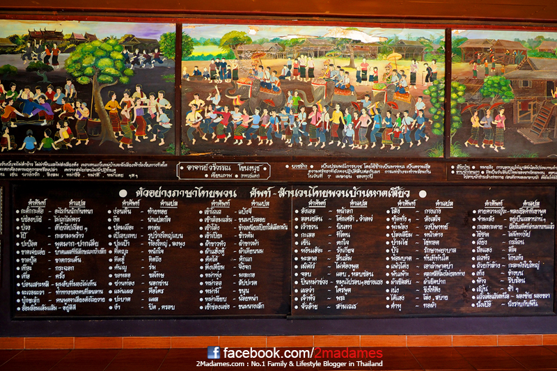 เดินมาอีกอาคารเป็นพลับพลารับเสด็จ ก็มีบอร์ดให้ความรู้แสดงภาษาไทยและภาษาพวนอยู่ด้วย