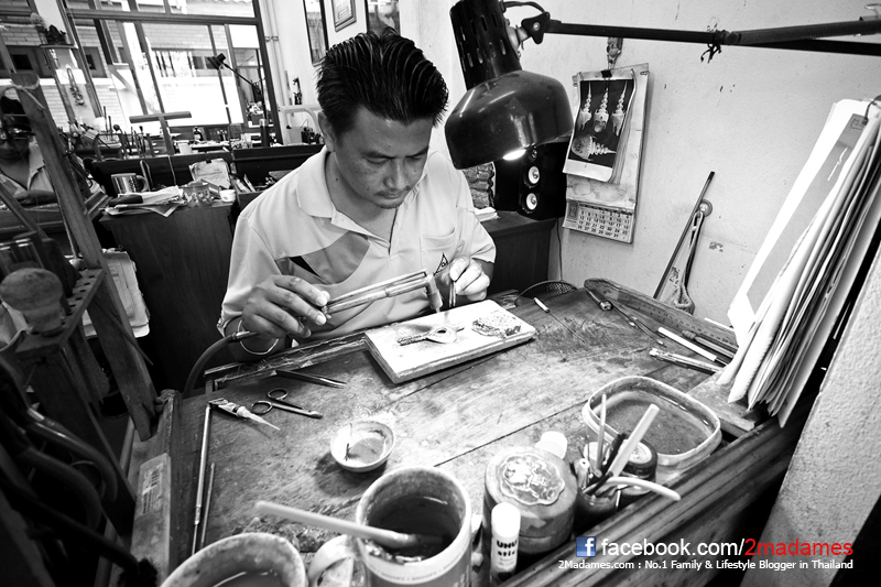 ฝั่งตรงข้ามกันเป็นโรงงานผลิตเครื่องเงิน ซึ่งเค้าก็เปิดให้เราเข้าไปชมเช่นกัน