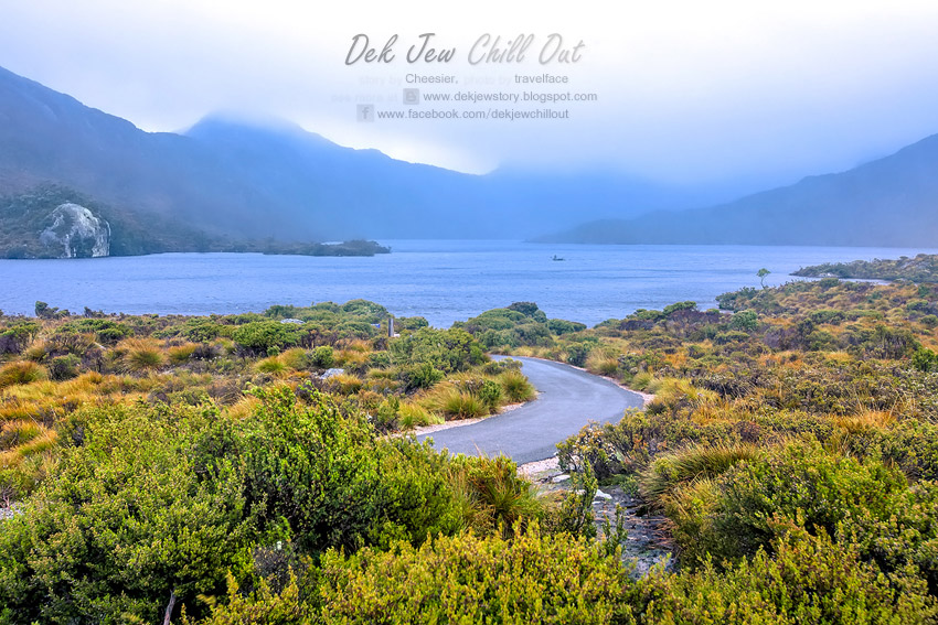 พอขับต่อเข้ามาตรง Dove Lake ก็ต้องผิดหวัง เพราะเมฆฝนก็ยังปกคลุมอยู่เหมือนเดิม แต่ฝนหยุดตกแล้ว