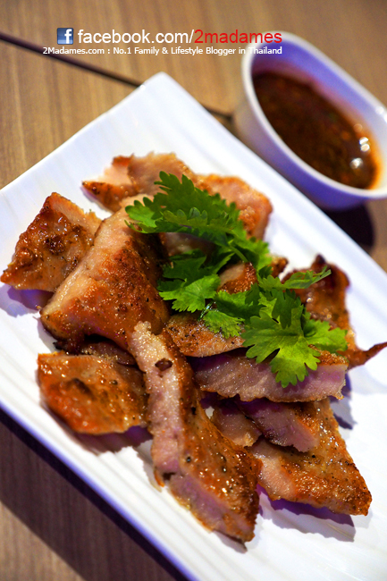 คอหมูย่าง ราคา 240 บาท ต้องบอกเลยว่าใช้คอหมูส่วนที่ดีมาก มันแทรกเนื้อกำลังดี หมักมาอร่อยเลยล่ะ เนื้อนุ่ม เคี้ยวง่ายมาก กลายเป็นเมนูโปรดของเด็กๆไปเลย