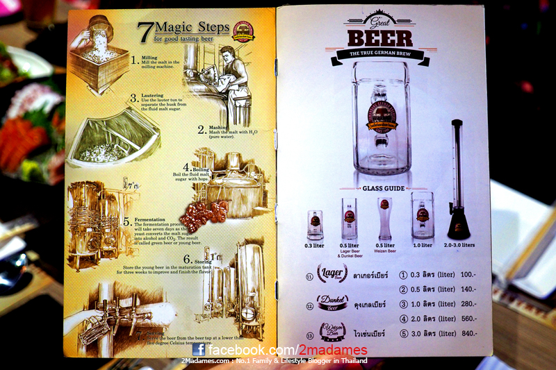 ส่วนเบียร์ที่นี่เค้าผลิตเองนะ มีให้เลือก 3 อย่าง คือ ลาเกอร์เบียร์ (สีทอง), ดุงเคลเบียร์ (เบียร์ดำ) และไวเซ่นเบียร์ หรือที่หลายคนเรียกว่าเบียร์ผลไม้ เหมาะกับสุภาพสตรีทั้งหลายจ้า