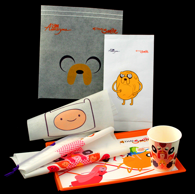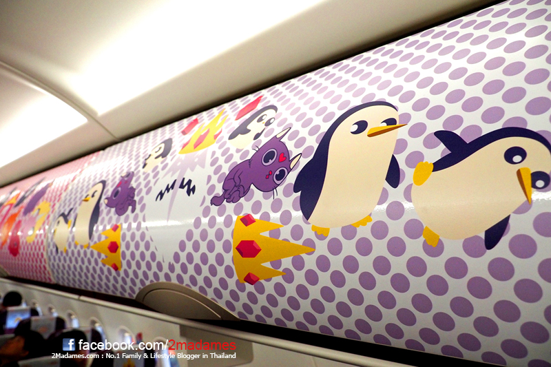 นอกจากนี้ของใช้บนเครื่องบินต่างๆ เช่น แก้วน้ำ, กระดาษรองจาน, Air Sickness Bag ก็ยังแต่งเป็นการ์ตูนด้วยครับ